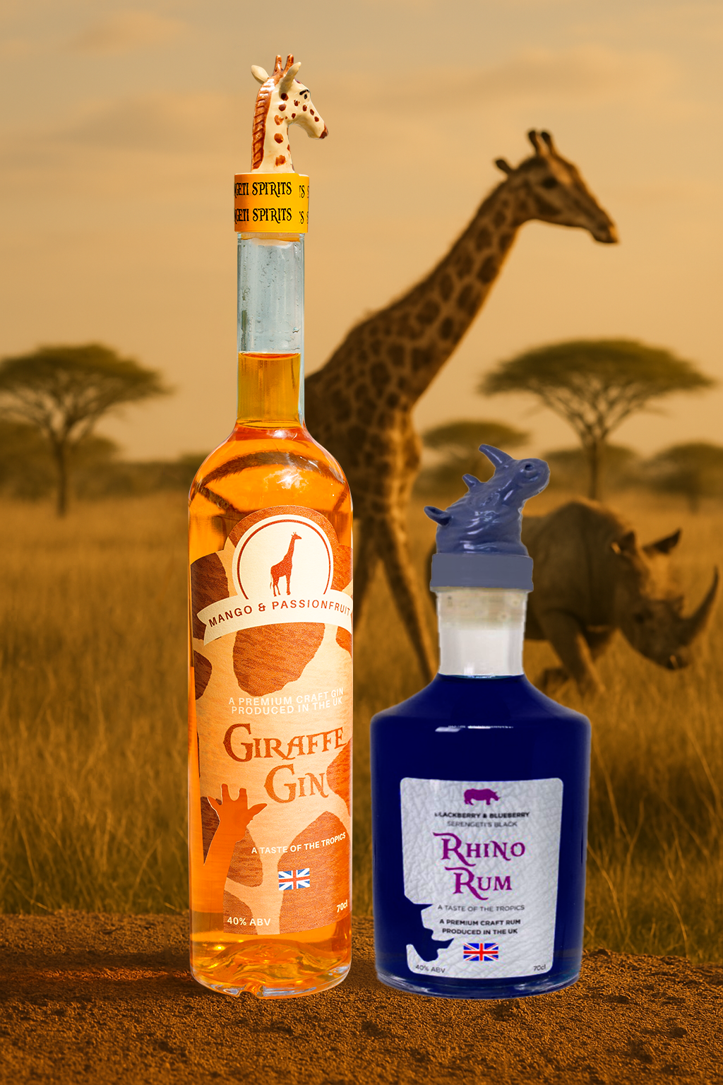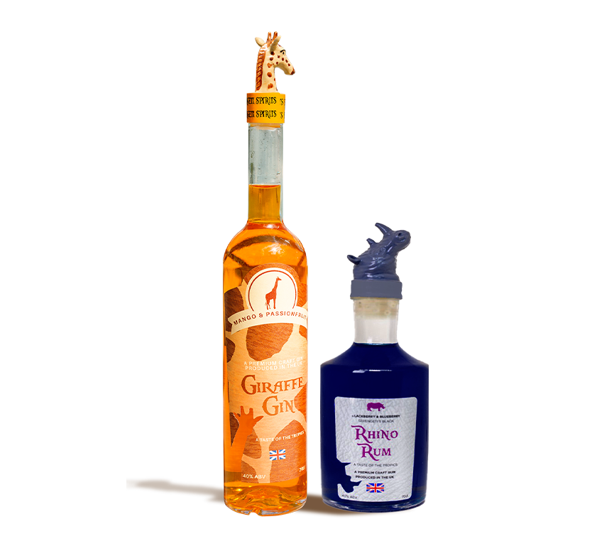 Furahia ladha nzuri za Afrika ukitumia kifurushi cha MAJITU MAWILI kutoka Serengeti Spirits. Uoanishaji huu wa kipekee wa Twiga Gin na Rhino Rum huleta pamoja kiini cha matukio na anasa, na kuifanya kuwa chaguo bora zaidi kwa sherehe za sherehe. Wakiwa wamehamasishwa na wanyamapori mashuhuri zaidi barani Afrika, wawili hawa hutoa ladha ya kijasiri, ya kigeni ambayo itainua tukio lolote.